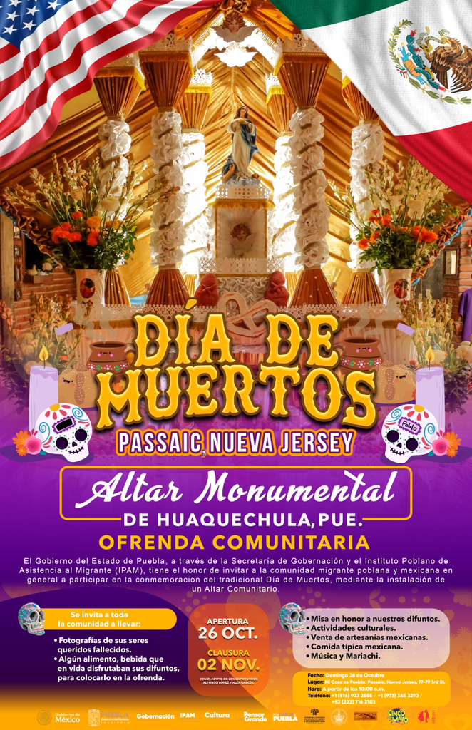 Los altares de muertos de ambos municipios fueron declarados patrimonio cultural de Puebla. La inauguración oficial se llevará a cabo el 26 de octubre a las 10:00 de la mañana, tanto en Los Ángeles como en Passaic, e incluirá una misa en honor a los fieles difuntos, presentaciones culturales, venta de artesanías y gastronomía mexicana, así como actividades musicales para fomentar la convivencia familiar. La exhibición concluirá el 2 de noviembre.