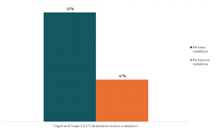 Movilidad social: permanencia en la parte baja de recursos económicos, personas cuidadoras y no cuidadoras (porcentaje de personas)