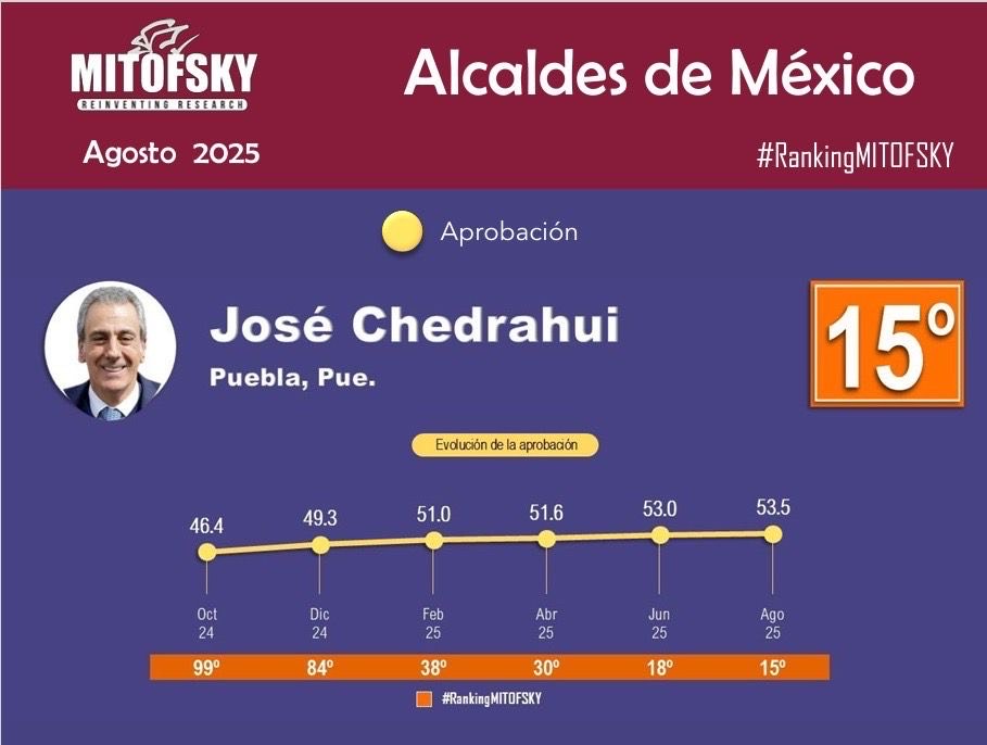El comportamiento de la aprobación ciudadana de Pepe Chedraui muestra mejoría constante, al pasar de 46.4, en octubre pasado, a 53.5 actualmente.