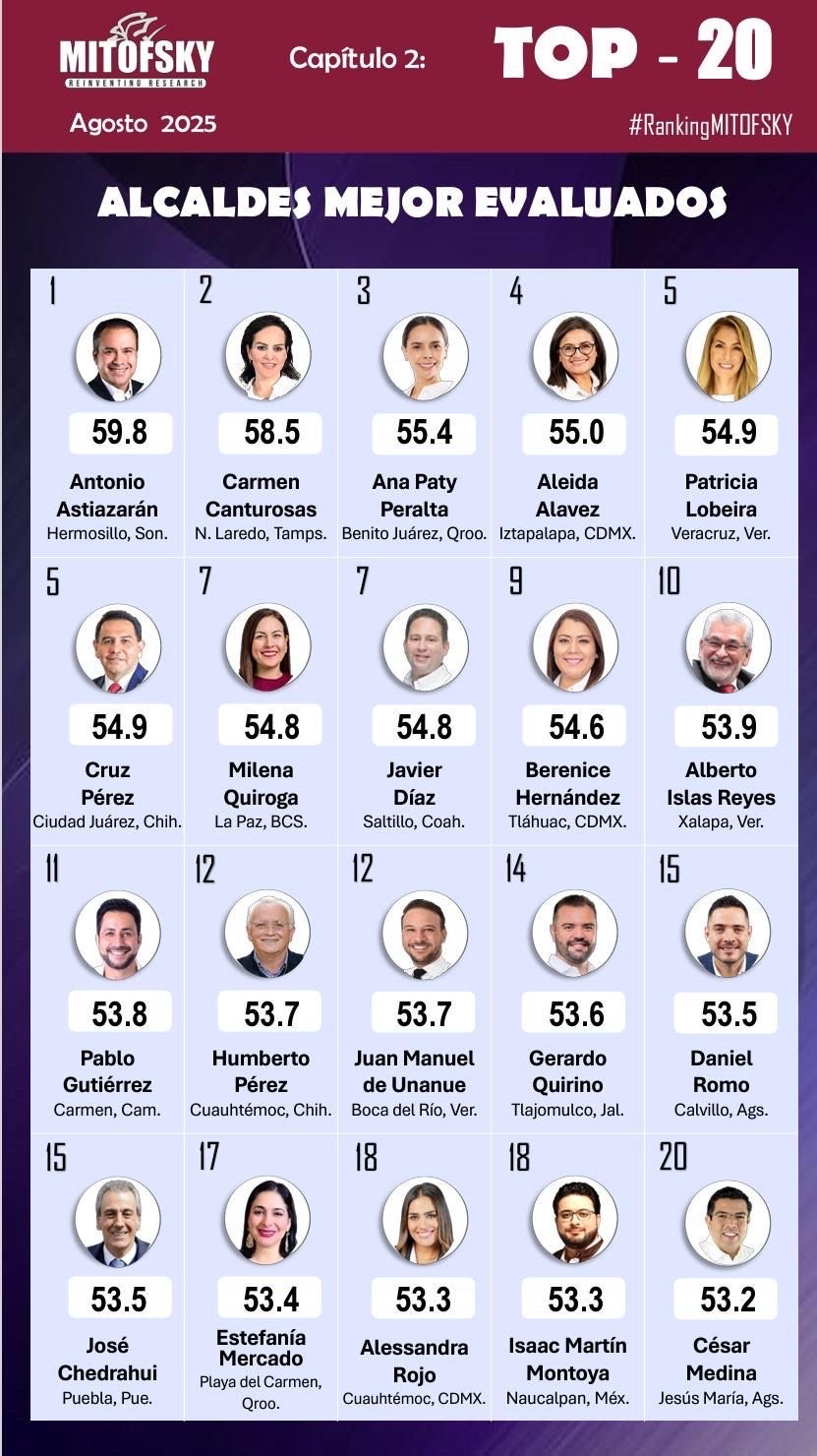 El primer lugar de alcaldes lo ocupa Antonio Astiazarán, de Hermosillo Sonora; de la alianza del PRI, PAN y PRD.