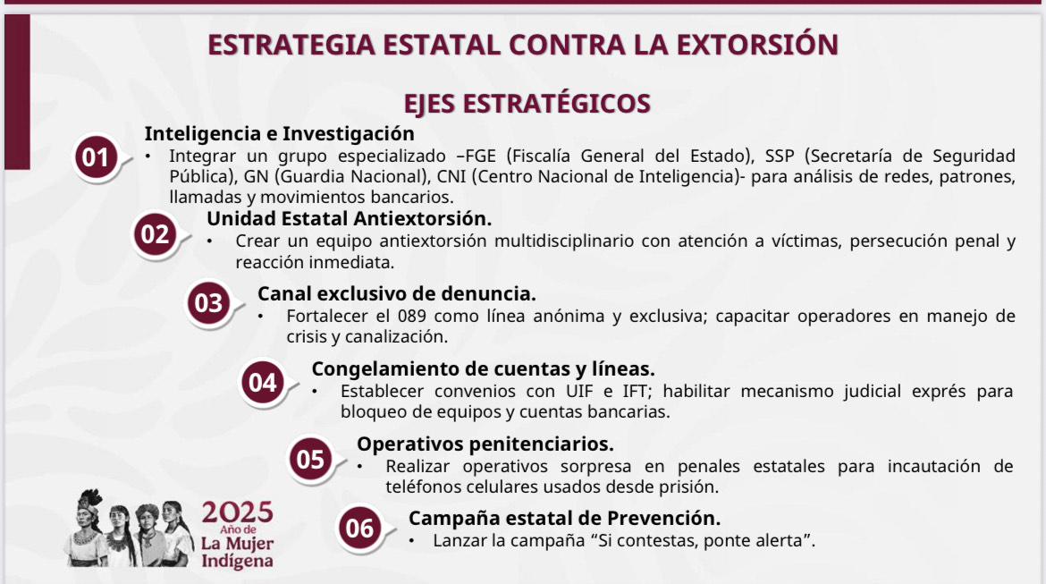 Este martes, el gobernador Alejandro Armenta anunció una estrategia estatal para prevenir, contener y desarticular redes de extorsión.