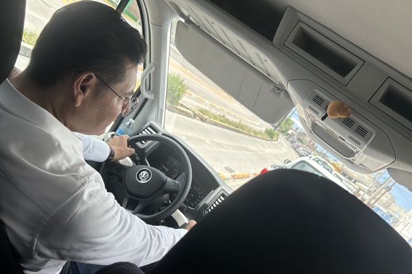 Sin escoltas en la camioneta tipo Van en la que traslada a periodistas de San Baltazar Tetela al ex estadio Ignacio Zaragoza, el gobernador Alejandro Armenta conduce frente al volante como conduce el estado: con precaución pero con la ruta clara.