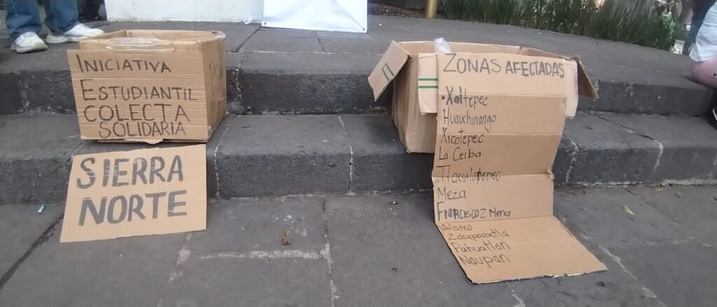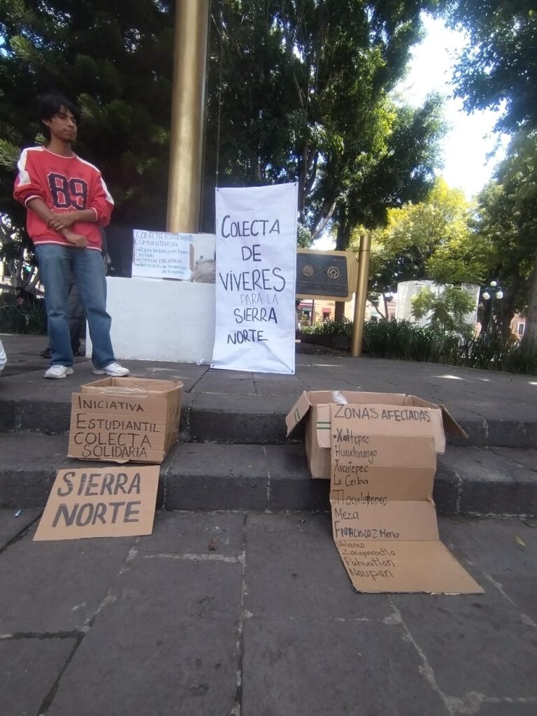 «Somos varios estudiantes que estamos organizando una colecta de víveres para apoyar a las comunidades de la Sierra Norte. Yo soy precisamente de Huauchinango y tenemos una compañera que es de Pantepec», declaró.