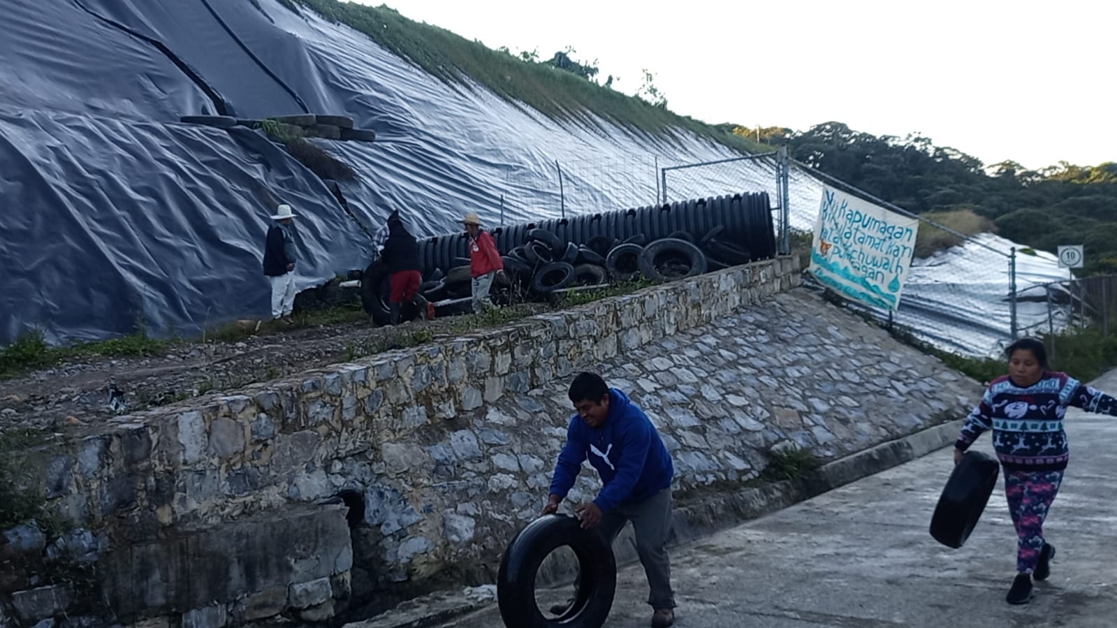 Asimismo, colocaron una lona con la consigna «Niikapumaqan kinpulatamatkan, katalakchuwalh pumaaqan!», que significa «Nuestro territorio no es basurero, relleno clausurado».