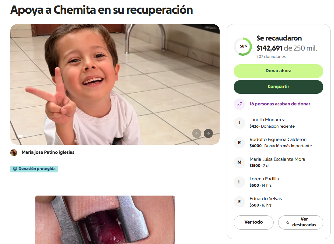 Aunque es difícil predecirlo, la familia de Chemita espera que, en su cumpleaños, se encuentre con un mejor estado de salud para poder celebrarlo. Apóyalos durante esta temporada adversa donando desde 20 pesos o compartiendo su colecta a través de este enlace: https://gofund.me/580fe192d