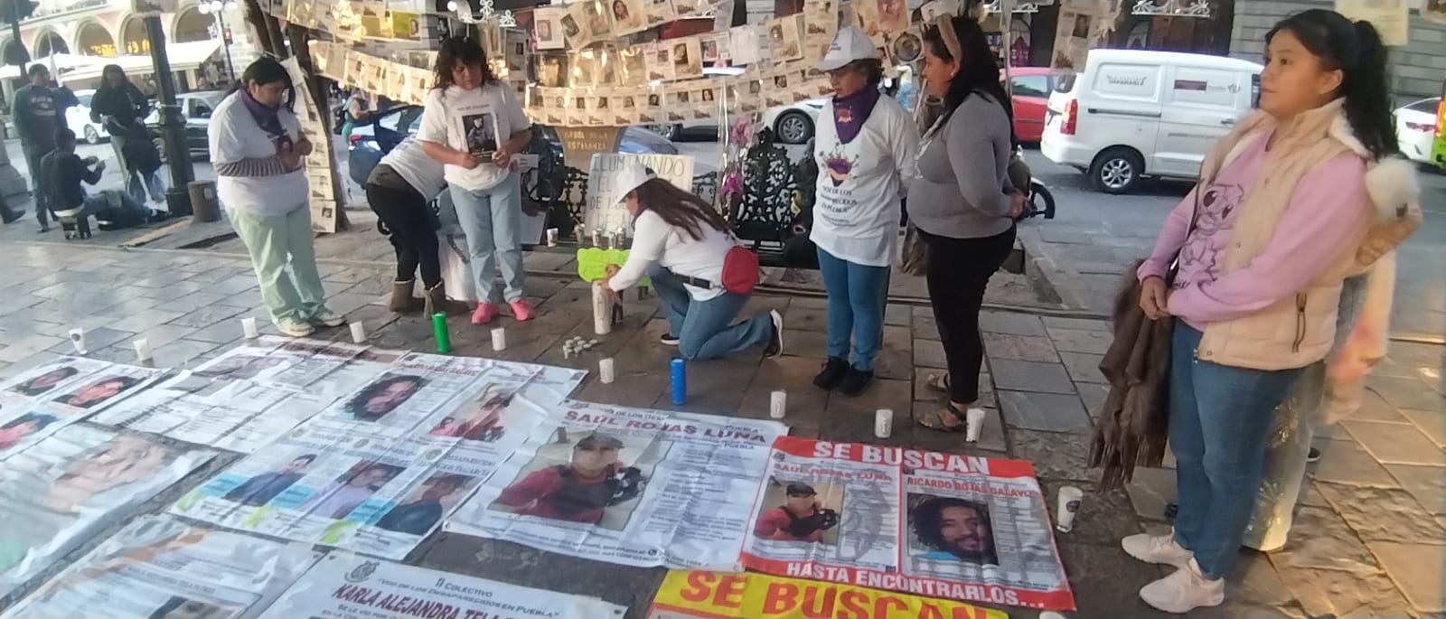En el caso de Puebla, mamás buscadoras de Voz de los Desaparecidos encendieron decenas de veladoras cerca del Árbol de la Esperanza y también colocaron fichas de búsqueda de sus seres queridos.