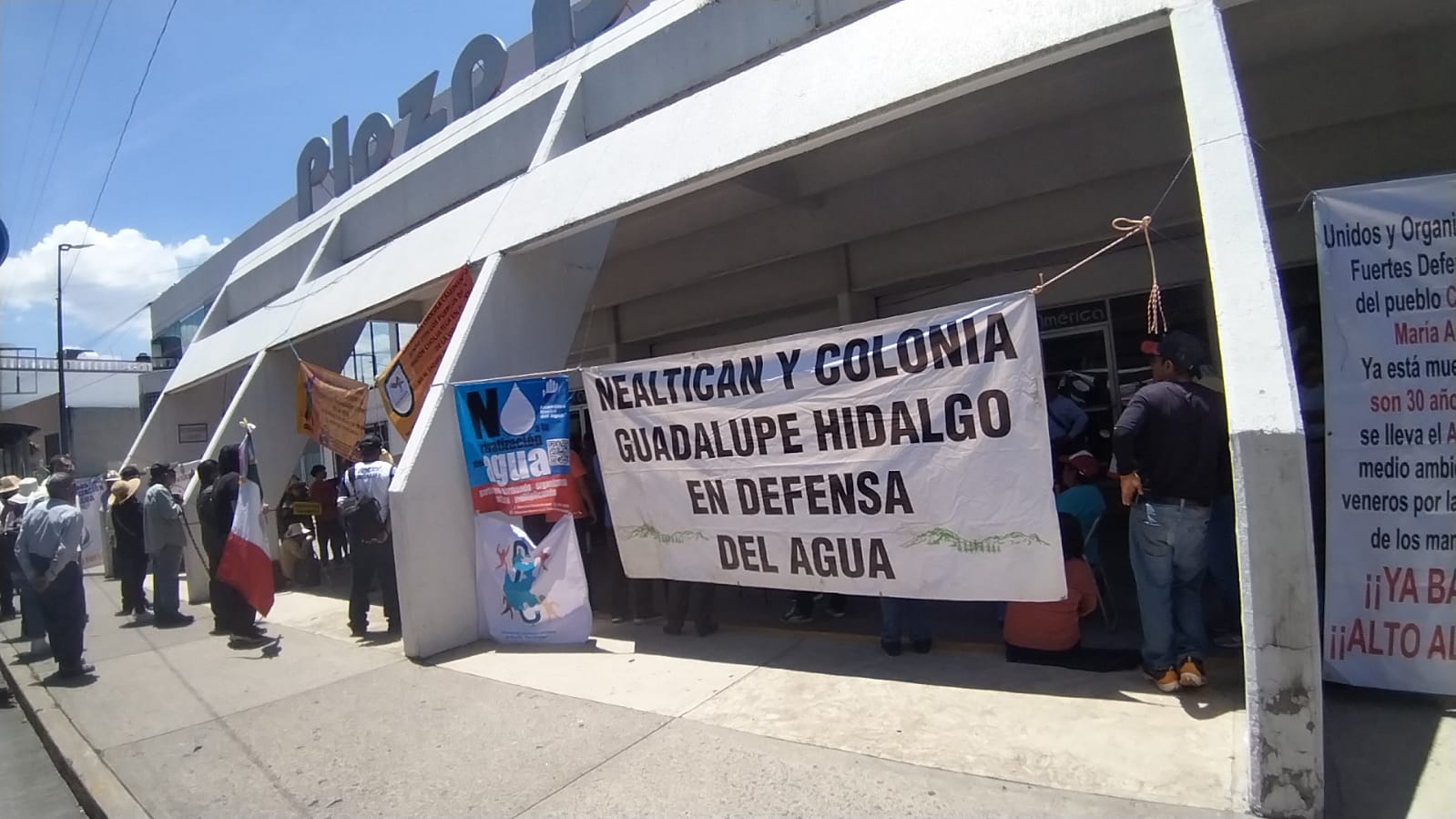 Las y los comunitarios arribaron a Plaza América alrededor de las 12 horas, pero minutos antes, elementos de seguridad del lugar ya habían cerrado el acceso principal.