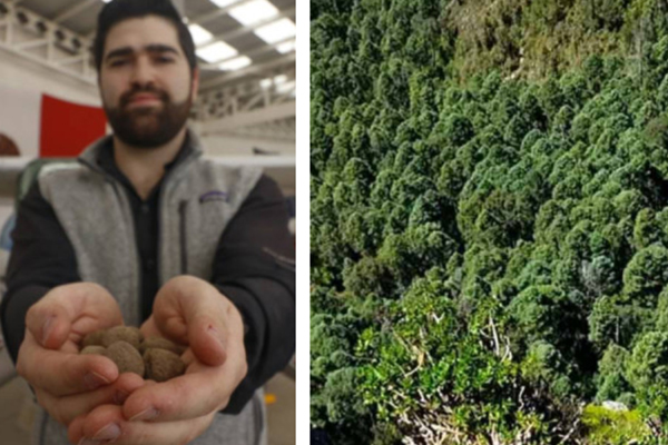 Cápsulas de arcilla, lodo, humus de lombriz y semillas de pino, que vuelan por los aires para restaurar los bosques del país, tan necesarios para la captación del agua de lluvia y la recarga de los mantos acuíferos, en momentos en que vivimos una de las peores sequías de la historia.