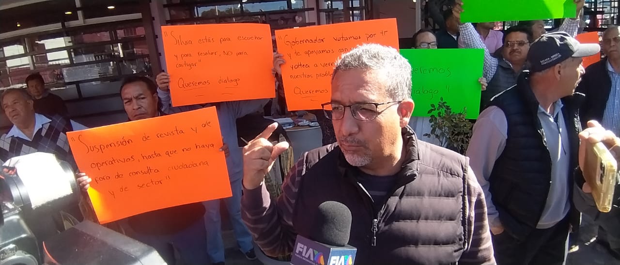 Por su parte, Samuel Méndez, uno de los concesionarios inconformes, acusó que, por la revista vehicular, a partir de este martes son alrededor de 10 mil las unidades que no están brindando servicio.