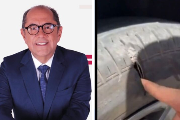 Ahí, constató que el ponchallantas desgarró uno de los neumáticos de su camioneta, lo que incluso pudo haber generado un percance vehicular.