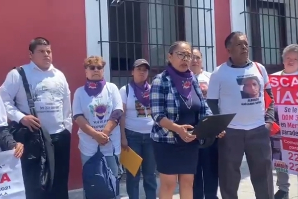 Integrantes del colectivo Voz de los Desaparecidos en Puebla realizaron este miércoles 16 de abril una protesta frente a Casa Aguayo, sede de la Secretaría de Gobernación (Segob) para exigir una reunión con el gobernador, Alejandro Armenta Mier.